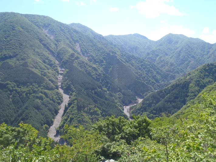 大量の土砂は銚子谷やザラン谷の崩壊による。谷の崩壊が谷と谷をつなぎ面の崩壊になっていて、その先端は遠足尾根の稜線に達しているのが中尾から見えた。土砂の堆積が止まることは当分ないだろう。青川峡に水が戻ることはあるのだろうか。