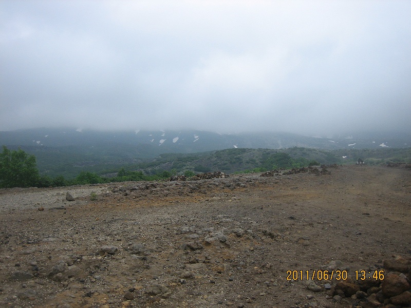 火口縁を歩く醍醐味を味わいたかったんですが、残念ながらガスの中をさまよっていただけとなりました。