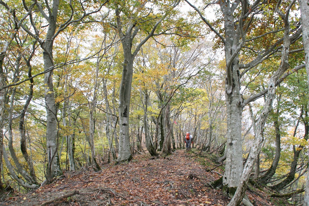 今は、本当にそうですね。尾根はブナ林の気持ちのいい尾根でした。