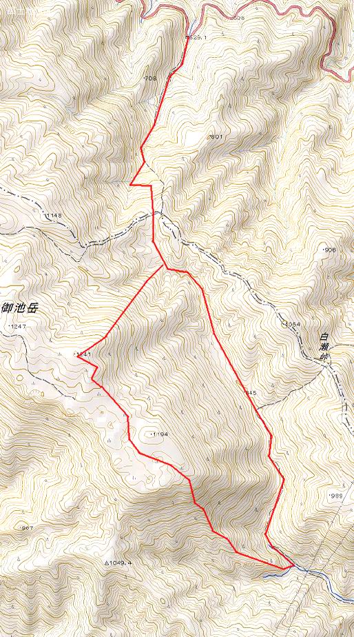 私は南尾根920m辺りから左へ取って池の谷屈曲点へ下りたことがあります。尾根は楽勝ですが、谷は疲れました。帰路は、谷沿いに下りるのではなく、土倉岳南尾根を辿って下りて行く。ヤブのなくなった今となっては、このルートを辿る方がはるかに簡単だ