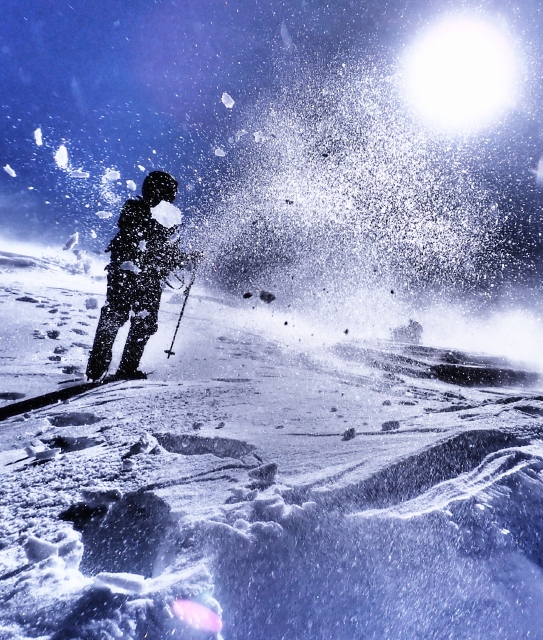 でも雪煙に交じって、氷片が飛び交い、時々顔をガードする。