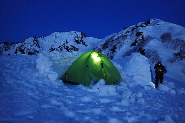 私は雪洞に泊まったことはないけど、風が強くても気にならないし、温度もテントよりは暖かそうだし、来シーズンには雪洞を作って遊んでみようかな。