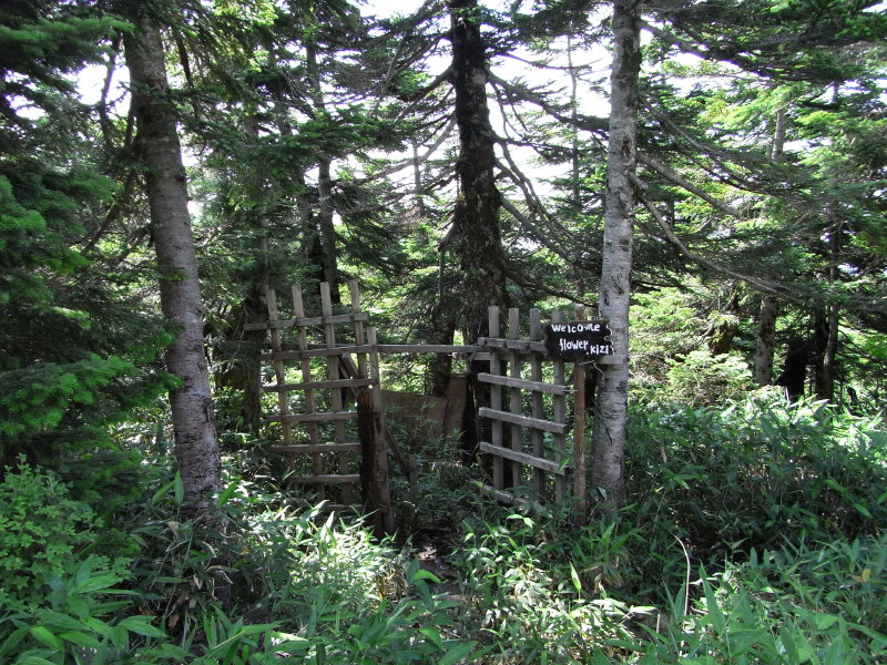 この写真でスグに分かったと思いますが、ココは飛越新道の登山口です。 久々の山歩きで、副隊長の膝の調子もイマイチ芳しくないにもかかわらず、かなり向こう見ずな今回のターゲットは、素敵な高層湿原や山頂からの北アルプス最奥部の大展望が楽しめる 北ノ俣岳(標高2661m)です(^_^)v