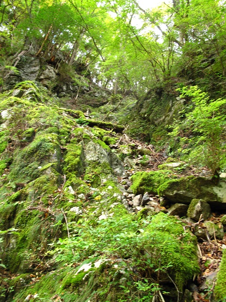 宮ノ谷登山道を進み、途中で右俣にあたる風折谷に入る。