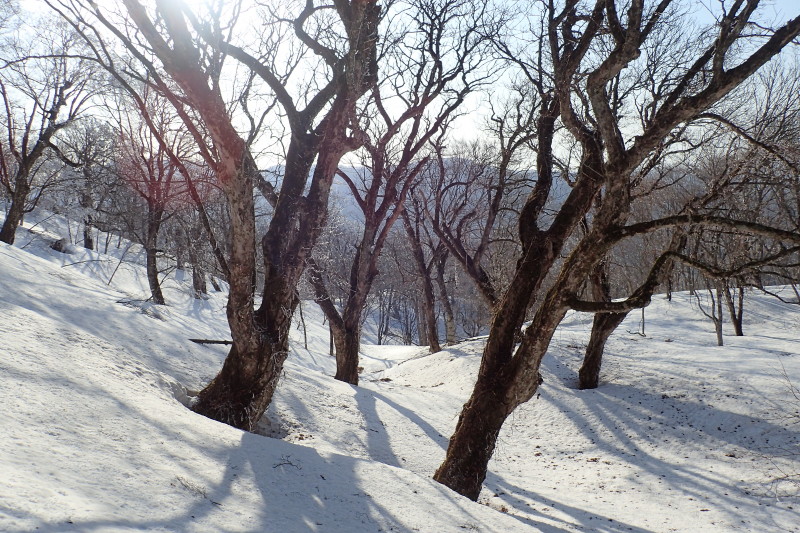 いつの間にか、岩谷キャンプ場からの尾根に合流していた。左の斜面を見ると、大きなトチが何本も立つ緩