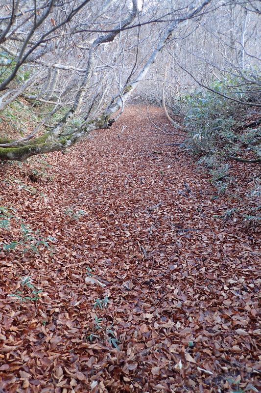 メジャーな登山道とはいっても、下山するまでブナ林のなか気持ちよく歩けますね。だいたい最後まで気持ちよく歩けるいいところだと思います。