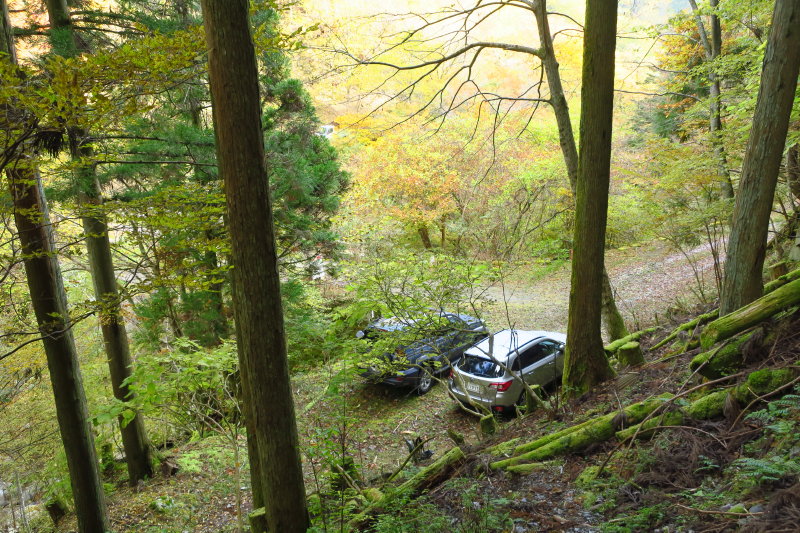 オフ会の前の週、ここはまだ紅葉していませんでした。一度になったわけではないのですが、台風のたびここの巨木は倒れていき、そのあとにくると、爆弾が落ちた戦災地のような感じです。荒涼化は進んでいますね。
