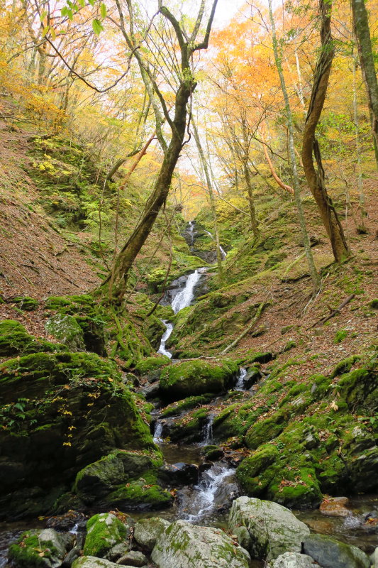 ここですでに1000m近い標高なので、谷筋の紅葉も今が盛りといった風情である。土の季節を選んでもそれぞれ