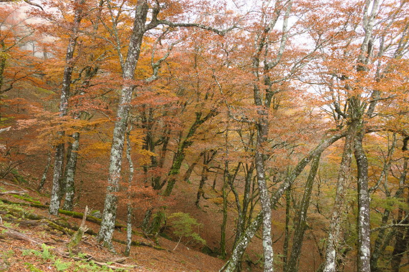明神岳と笹ヶ峰の間の稜線は、台高山脈主稜線の中でも最良の部分だと思う。ブナとミズナラの色付きは文句