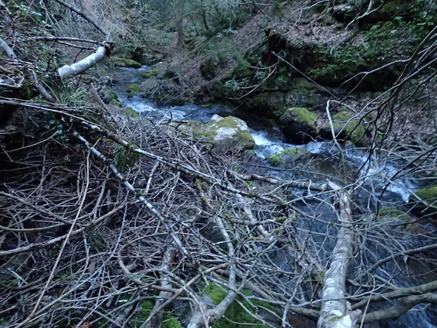 さっそく踏み跡がなくなりこのまま右岸の尾根に直進しそうだが、倒木が塞いでるけどここは源頭をトラバースするのは知ってる。