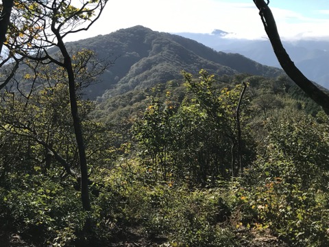 下山を始めて 暫くは左手に 登って来た稜線を眺めながら 歩き易い尾根道を下る 下ると言ってもあまり標高をあんまり下げてない じわじわと高度を下げてはいるが…