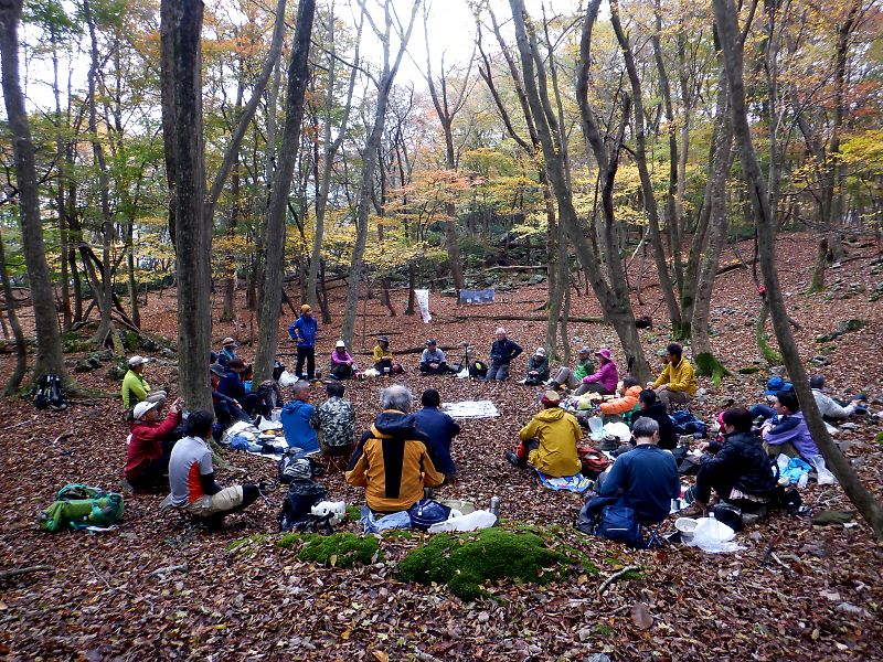 私はうちで作ってきたおにぎりとカップスープという簡単なランチでしたが、隣ではわしたかさんがいろいろな食材を持ってきて鍋をしたり、その先のみょんさんやもとさんも手の込んだ料理をしていてすごいなあと思いました。