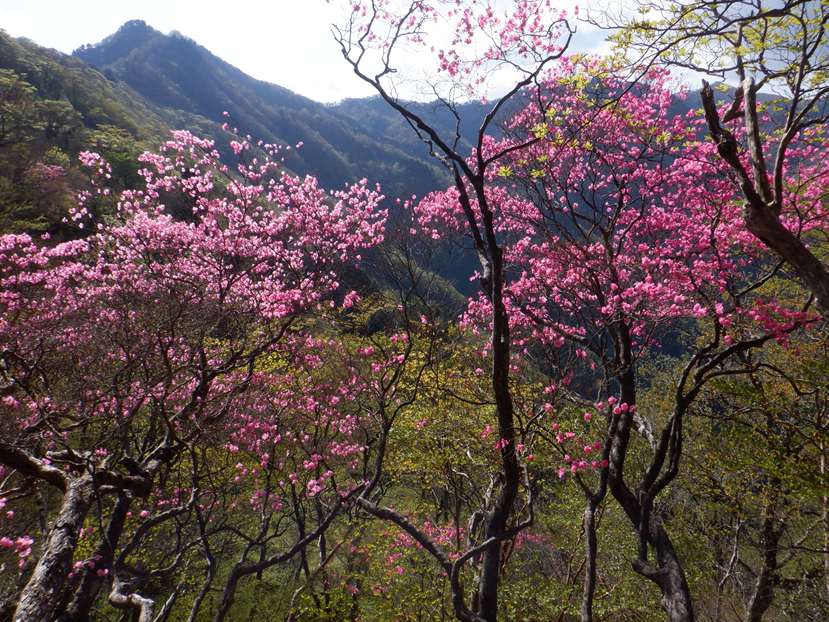 千石東峰のアケボノツツジは咲き始めたところだ。シャクナゲも咲き始め。ミツバツツジが終盤か。