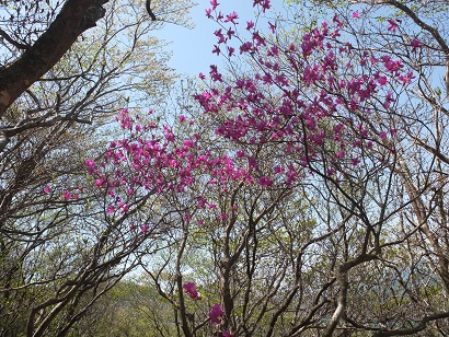 頭上には鮮やかなミツバツツジも咲いて盛り上げてくれます。