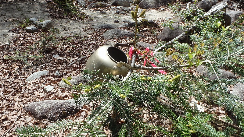 ご指摘の通り! たしかに他のレポの画像とは違和感がありました。光るヤカンも架けられている木の様子も…。でも地図上の位置はピッタリでした。赤坂ヤカン②でしょうね(笑)12年前の私の写真ではもう十分に古いヤカンだったですけどね。新しく見えますね。代替わりしたんだろうか?