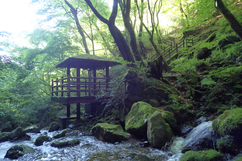 谷へ出ると空気が一変して冷気が全身を包んだ。日の当たらない谷は薄暗く、意外に多い水量と相まって少し陰鬱な印象