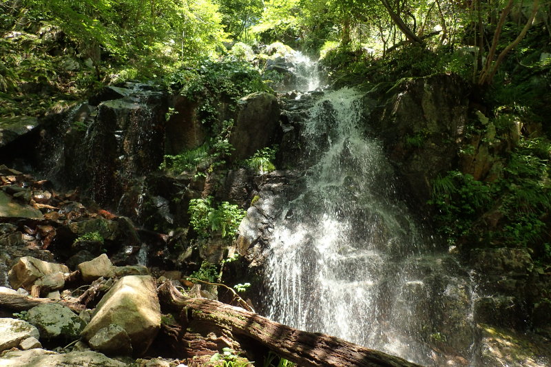 ようやく久しぶりに滝らしい滝が現れたと思ったら、これは左俣にかかる滝だった。進むのは那岐山頂に近い右俣である。