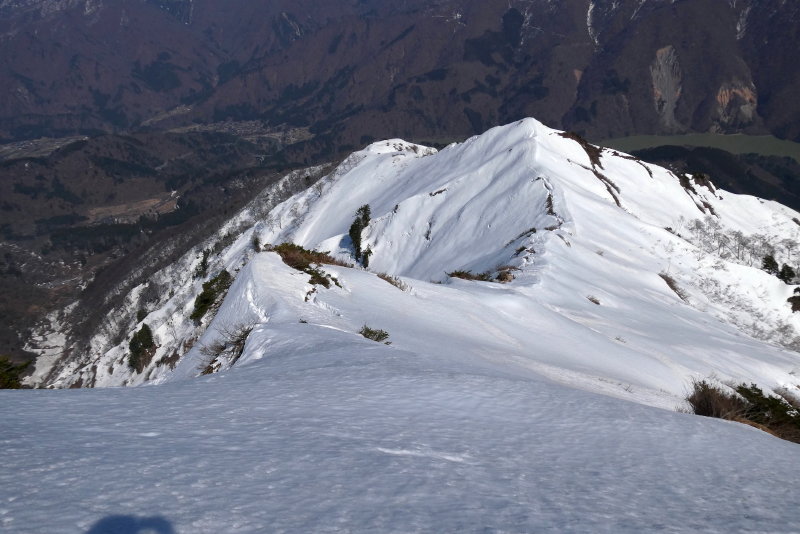 ここから赤頭山を経て大窪へ至る尾根は高度感満点の雪稜だ。