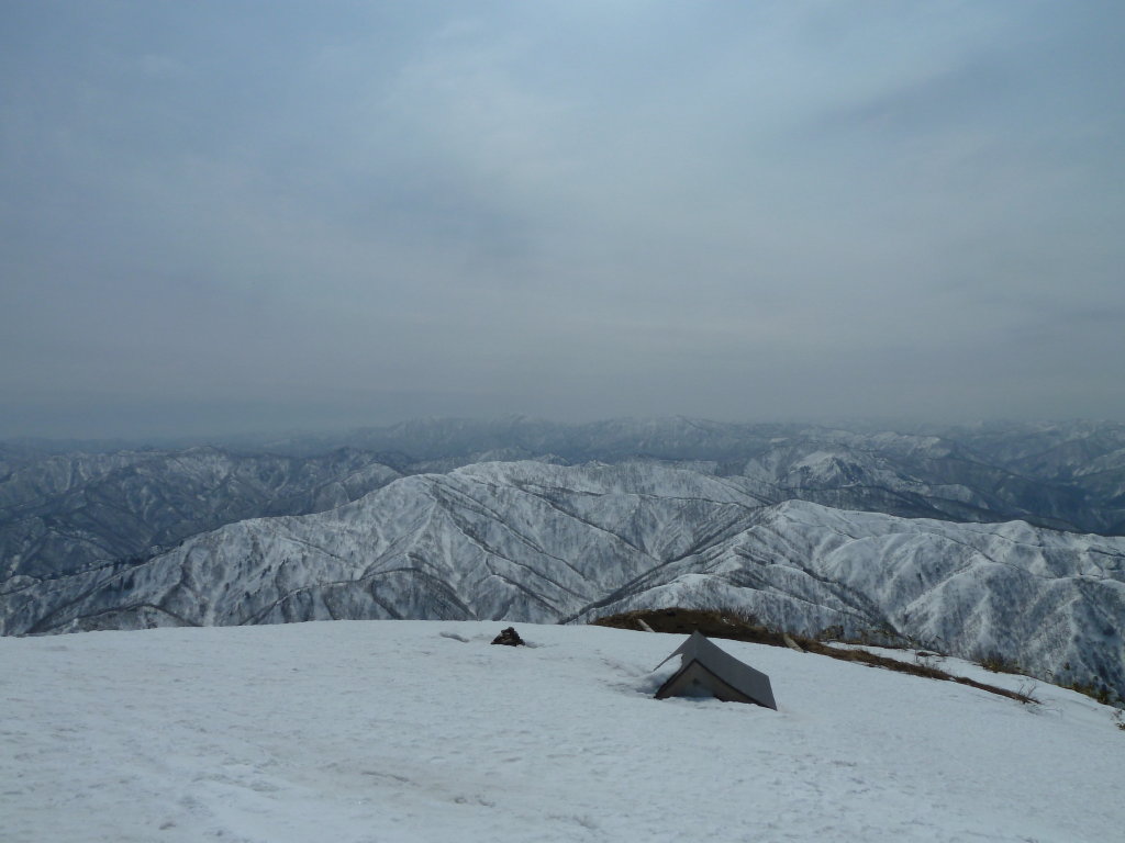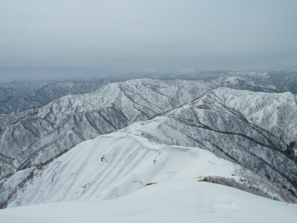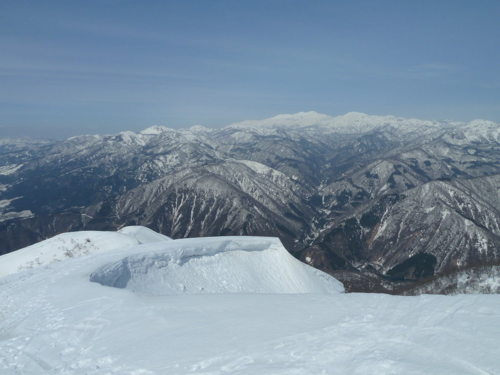 境の山々、姥ヶ岳、銀杏峰、部子山、越前甲。浄法寺山や高平山といった1000mばかりの山々でもまだ真っ白な
