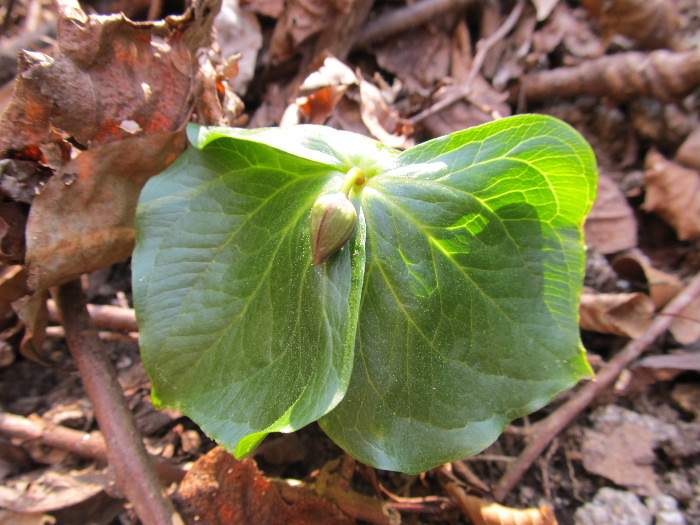 「谷を歩けばいいものに出会えるかもよ」と昔誰かに言われた記憶が甦る、「なにか良い花ないかな?」黄色や白いネコノメソウが咲いている、これはいいやと上がり出すと、植林の倒木や間伐材が放置されているではないか、歩き難いことこの上ない、おまけに標高上がると花も無くなり良い所なしだ。