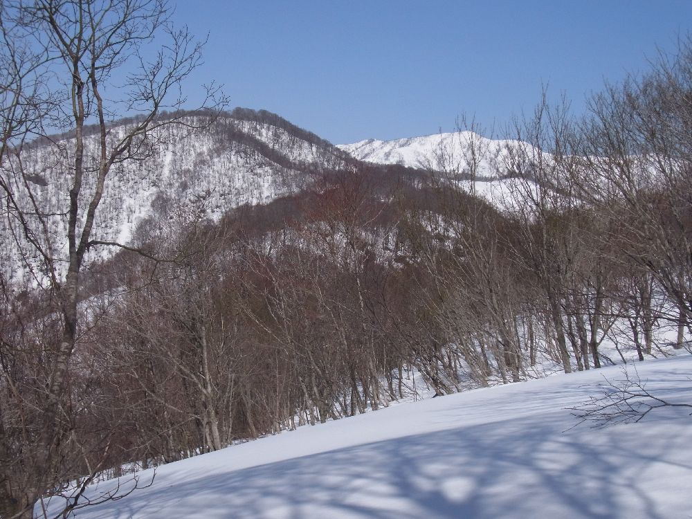 ここから見る左千方は中々魅力的な山容をしていましたが、谷を分ける尾根の取り付きは既に黒々とした地肌が見えており、これらの尾根を訪れるのは来シーズンの楽しみになりそうです。なだらかなこの尾根もブナが多くいい尾根です。