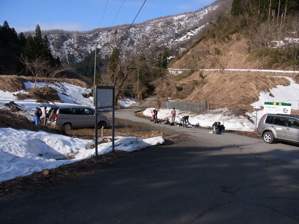 雪解けは早いスペードで進んでいるようです。この日の田戸の駐車地です。