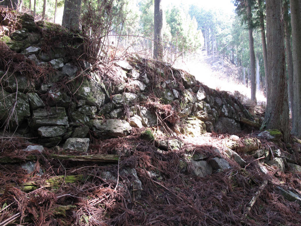 発電所の近くで道を聞いたところ林道の途中から「旧道」と呼ばれる杣道が続いているようなので、杣道を歩く。しばらく上ると屋敷跡があらわれる。これは、元禄のころから続いた南伝八郎の屋敷跡になる。その後、杣道は植林の尾根を巻くのだがここで消えてしまう。この尾根の上部に石碑があるので、探しに行く。岩場はあるのだが、結局わからずじまいで中栃村の中で一番規模の大きい八幡谷と関所谷沿いの集落跡に向けて尾根を下って行く。