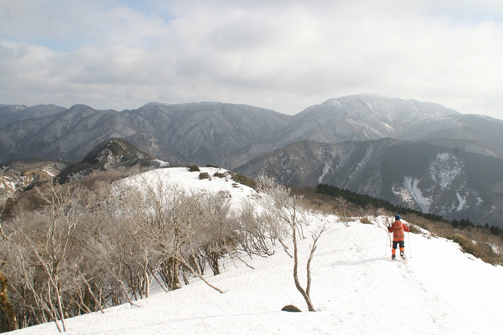 > 無雪期に一度雨乞岳から綿向山へ歩いたことがありますが、北峰から稜線を眺めるとブッシュに白い線が浮き出ている様子な