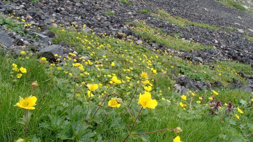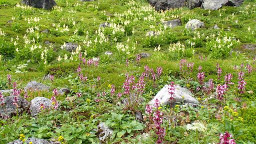 他にはヨツバシオガマ、チングルマ、ミヤマダイコンソウ、タテヤマリンドウ、ウサギギク等々が見られる。