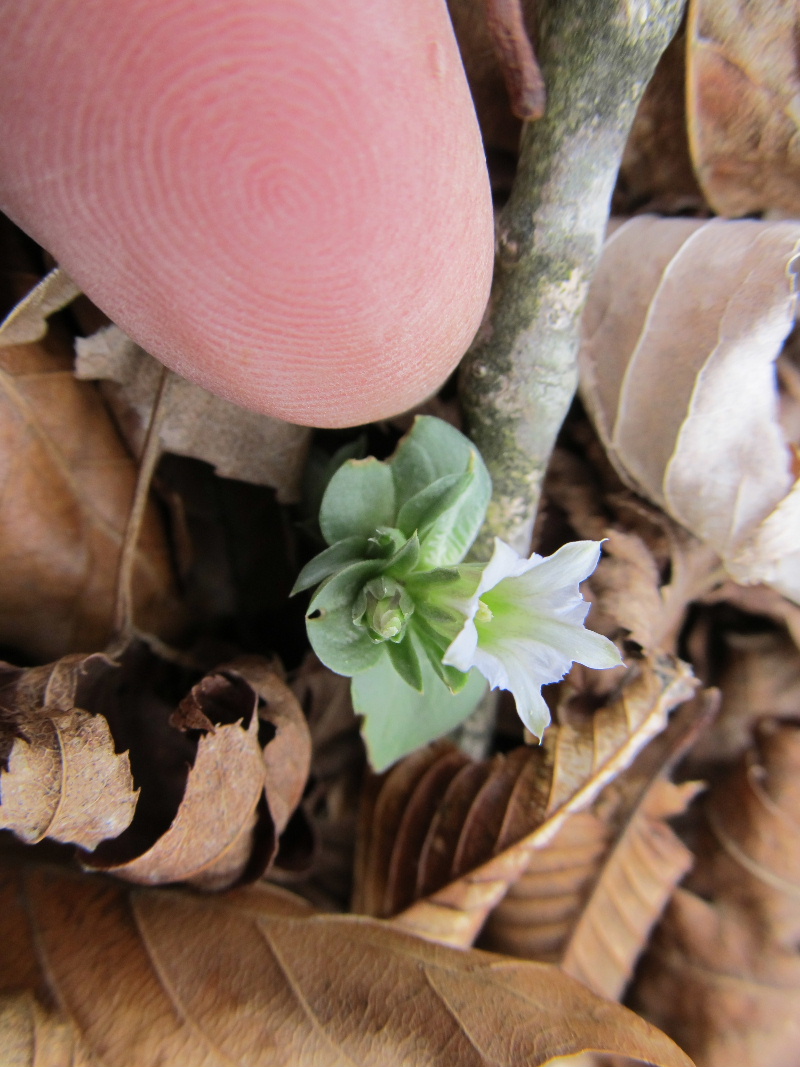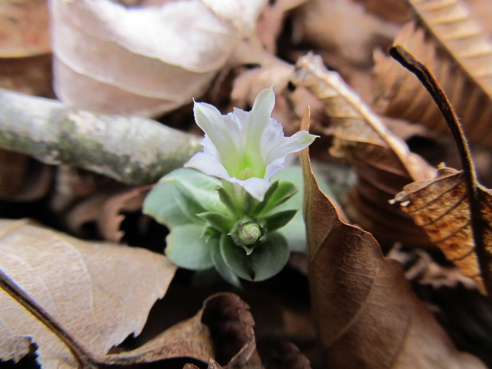 今日はこんな花を見つけた花径は5ミリ有るかなし、白いリンドウだ、山で白いリンドウを見るのはこれがはじめて、こんな小さいのも初めてそばを探すともう一本やはりこれも白かった。帰って調べるとコケリンドウかもしれない(ちがうかも?)、そうだとすると三重県では絶滅危惧IA類、それもシロバナ貴重種だね、でもこれ中々目が良くなければみつかんないとおもう。場所は内緒
