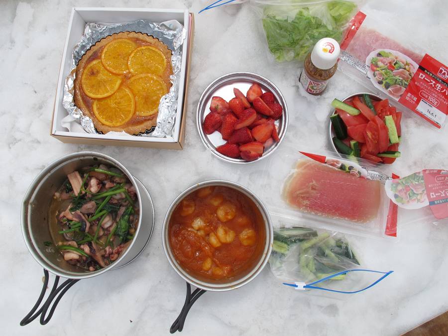 皆さん、色んな食材をボッカ&調理有難うございました。現地で作る余裕がないので、予め作りおきのデザートでした。
