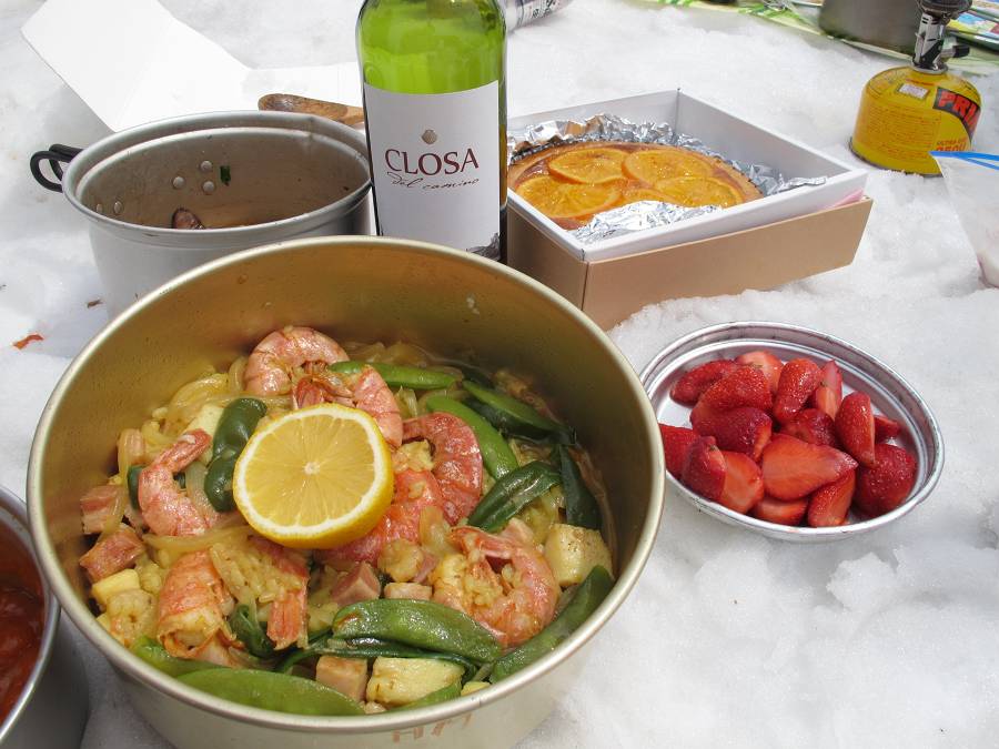 輝く北方稜線の白い山々を眺めながらイカスミパエリアやNakanoシェフ特製グルメを口に運んでいると、なんだかピレネーの山中にでもいるような気分になってきました。ピレネーの山中を彷徨えましたか、それはよかったです。