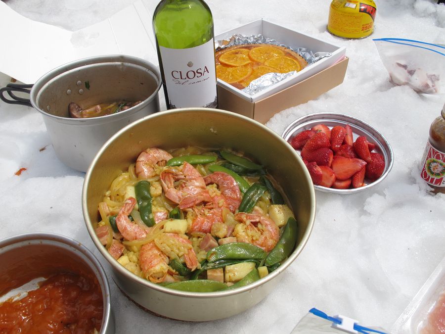 輝く北方稜線の白い山々を眺めながらイカスミパエリアやNakanoシェフ特製グルメを口に運んでいると、なんだかピレネーの山中にでもいるような気分になってきました。