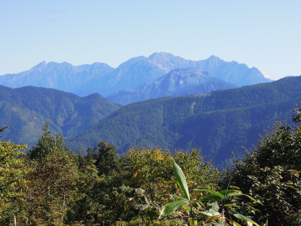 展望に恵まれぬ今回の山行でやっと遠くの山が見て取れた。雲ひとつない天気。あっちの山もさぞ賑わっていること