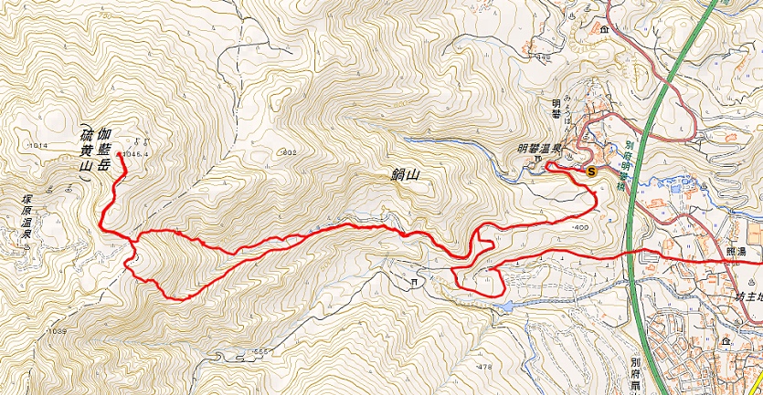 関西の人はほとんど登ったことがないと思われる伽藍岳だが、この山は別府市街の背後にあって別府に豊かな温泉を供給している活火山で、867年に小規模ながら爆発をしているようだ。西側の塚原温泉(約800m)まで車で行って登るのが一般的だが、六右衛門は車がないので東側山麓の明礬温泉(約300m)から登る。