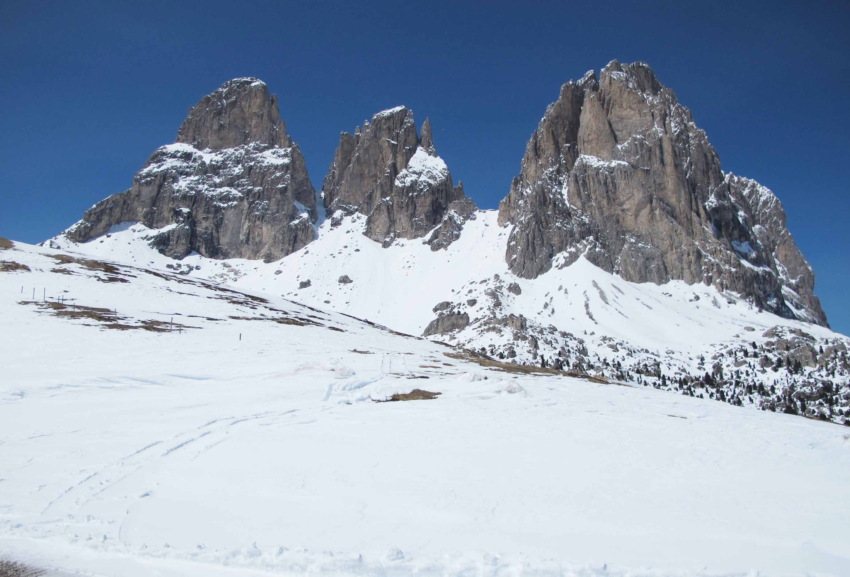 Monte Punta(プンタ山)での激ラッセルに意気消沈してしまい、翌日はドロミテ山中をドライブしながら雪の状態をチェックしていた。やはり除雪された道路以外はどこも歩くのが大変なことには違いなく、残る2座の登頂も断念せざるを得なかった。