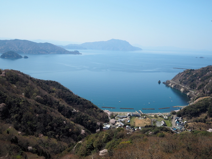 神子崎の東の車道脇からの漁港と神子の桜の情景は、一度見たら忘れられないこころに焼き付く情景ですね。