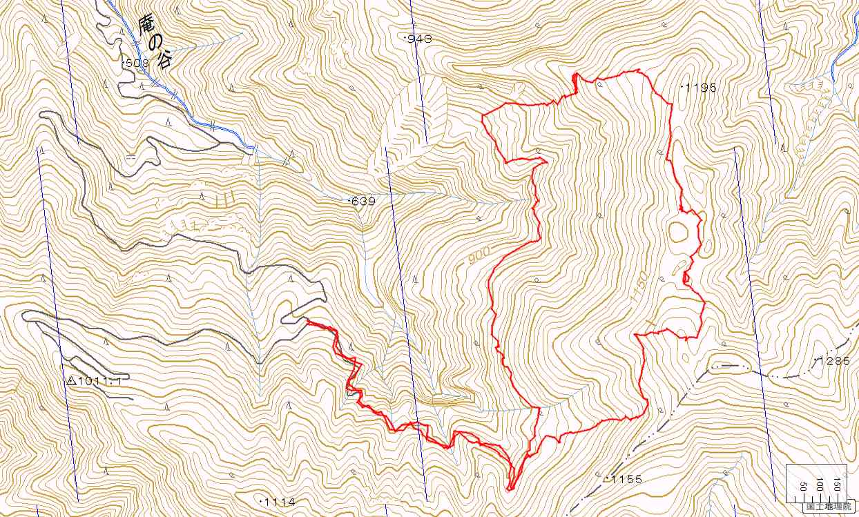「庵の谷のダイラ」も・1155の北西 Co1020の巾広い所が