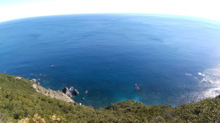 網代浜へ向かう海岸線の尾根から撮った写真は、まさに地球が丸いことを感じる水平線だった。