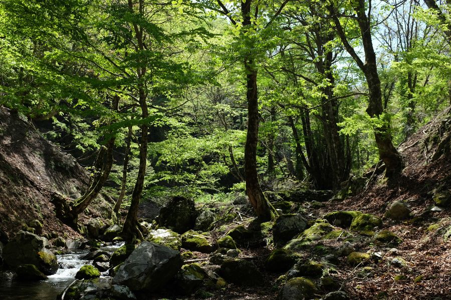 新緑の時期でしたら、林道をがんばって上がって950mから1050mあたりを歩くのが一番充実度高くなると思います。