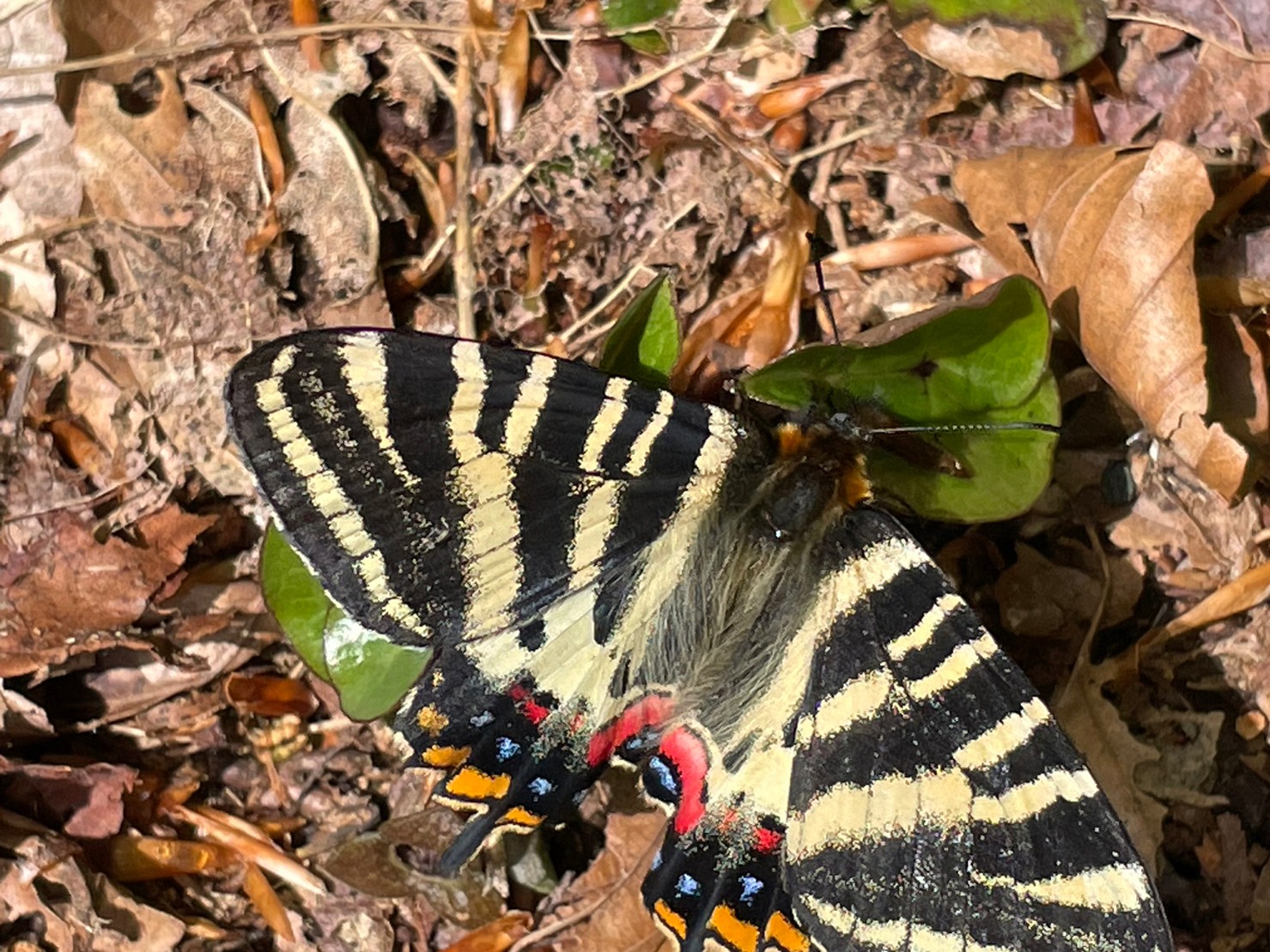 人なつこいギフチョウが舞い降りた。メスだ。産卵のためにカンアオイに寄り添っている。こんな時は撮影チャンスだ。葉の端に止まって葉裏に卵を産みつけようとするからだ。1度に数個から数十個産卵すると聞く。ムラサキヤシオと戯れることもある。赤い花が好きなんだね。