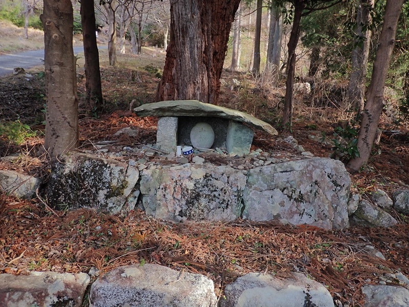 局ヶ岳は西の嶽山と川上若宮八幡宮では呼ばれている。東の嶽山と呼ばれる高見山との間にある川上十三峰を神体山としており修験の行場となる磐座が点在している。山頂からは来た道を戻り、小峠から旧道を下る。整備された道を下ると下部で磐座に古木がからんだ大岩が見える。下ると磐座に向けて石積みの坂道がつけられている。旧道では石積みは見なかったので、ここは特別なのだろう。山の神か修験の行場だったようだ。帰りに宮前のはずれの小山にお堂があるので、見に行くと。不動明王が祀られていた。局ヶ岳が修験の行場として栄えたころの名残だろう。健脚コースのやせ尾根も当時は行場として使われていたのかもしれない。