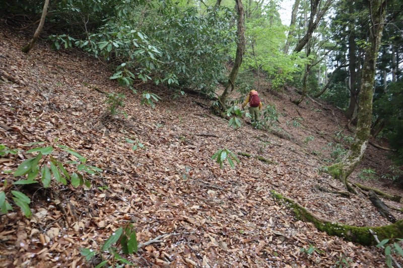 与助谷山からはしばらくは気持ちのいい自然林だったが、途中から植林になった。このまま最後まで植林かなと思っていたら、また自然林になった。
