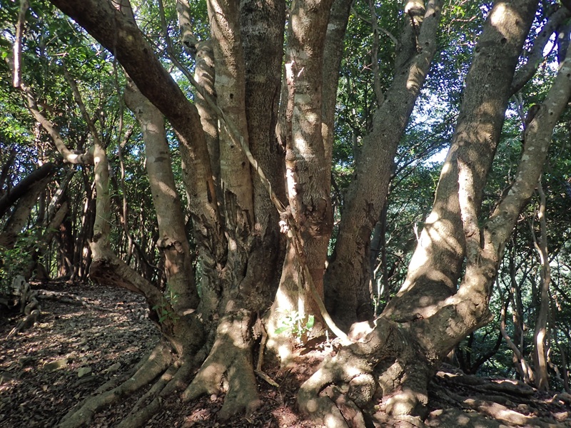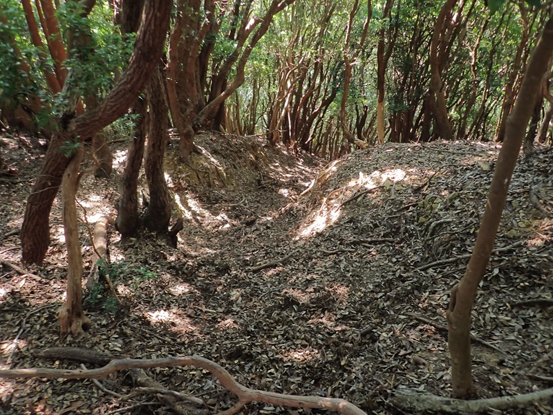 ニラハマ展望台に下りていく道は背丈程のシダ藪でマダニの巣窟だ。東北東に伸びる尾根の鞍部まで進むが、その先がシダ藪だ。