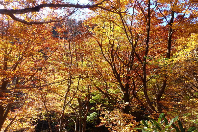 単調な林道歩きも、全山素晴らしい紅葉で、飽きることはありませんでした。