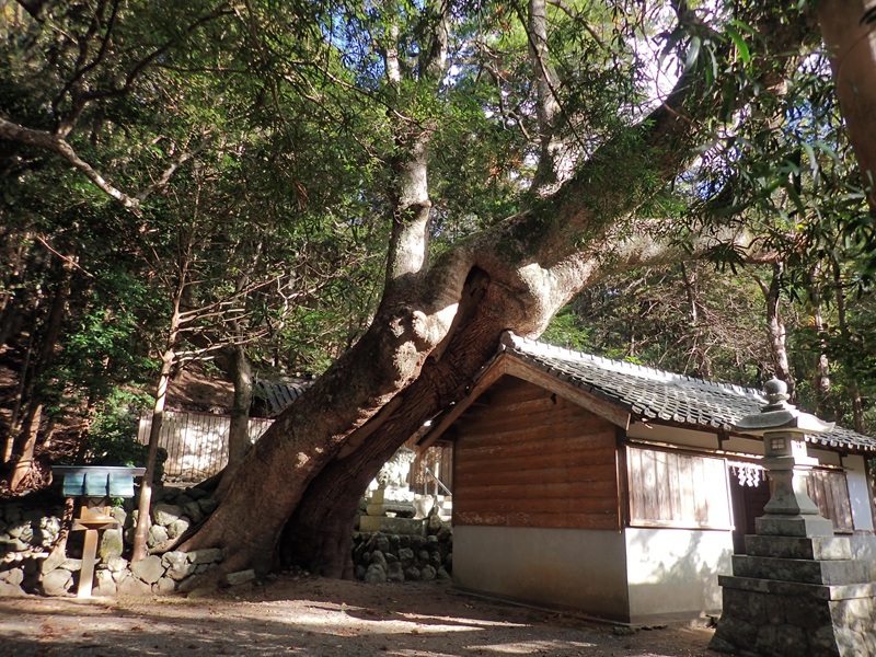 阿曽浦漁港のはずれに阿曽浦弁天の赤い社が浮かび、大方竈に入ると昭和東南海地震の際に3mを越える津波があったとする潮位板があり、集落すべてを飲み込んだようだ。集落の山側に八竈八幡神社があり、竈方集落に分祠が置かれた本社になる。竈方の氏寺の大智院も大方竈にあり、竈方集落には末寺があった。製塩の業を領主の愛洲氏や北畠氏から許可されたという「竈方文書」と目録を照らし合わせる儀式「竈方祭」が隔年1月5日に大方竈で行われている。南北朝時代南朝方に味方し、愛洲氏の下で竈方党として武功をたて、その恩賞として国司北畠氏より竈山を拝領したと伝えられている。竈方文書の多くは塩を焼くための竈山に関するものだった。神社には神木の大クスが横たわっており、津波もここまでは来ないようだ。