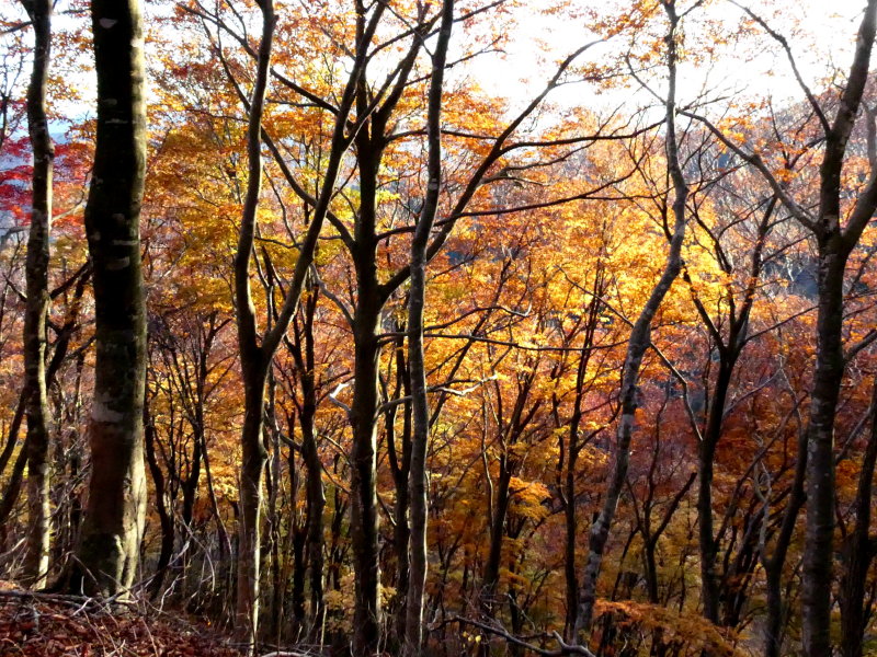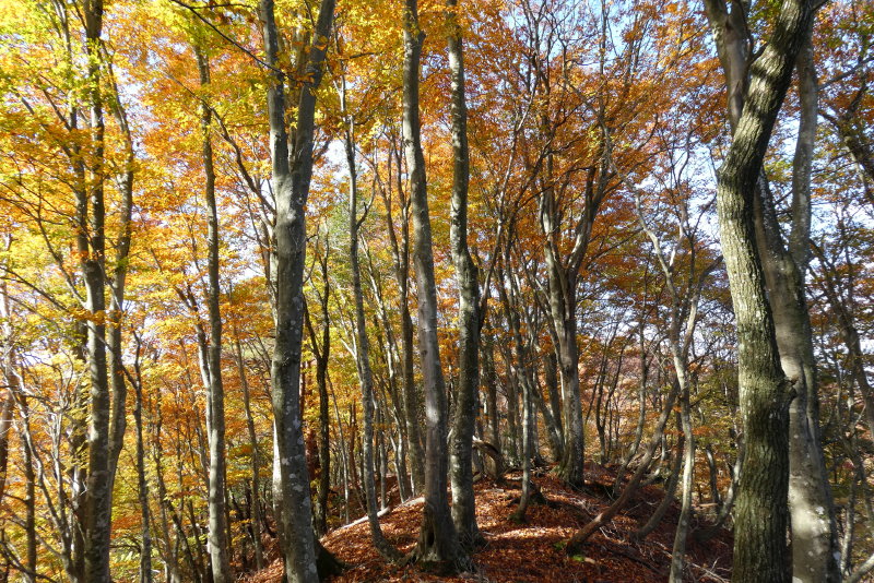 標高500mにも満たない場所でブナの純林が存在しているのも感動的ですが、こんなにも見事に色づいた木々に出会えるとは。