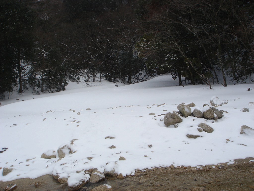 >三つ口大堰堤の上に上がればトレースのない広場が目の前にある。久しぶりに来たなぁ。半年振りかな。