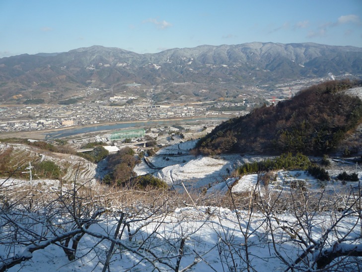 登り始めの紀の川の南側斜面をまいてゆくあたりは、紀ノ川沿いの眺望がとても良い。あたりは特産の柿の木畑である。