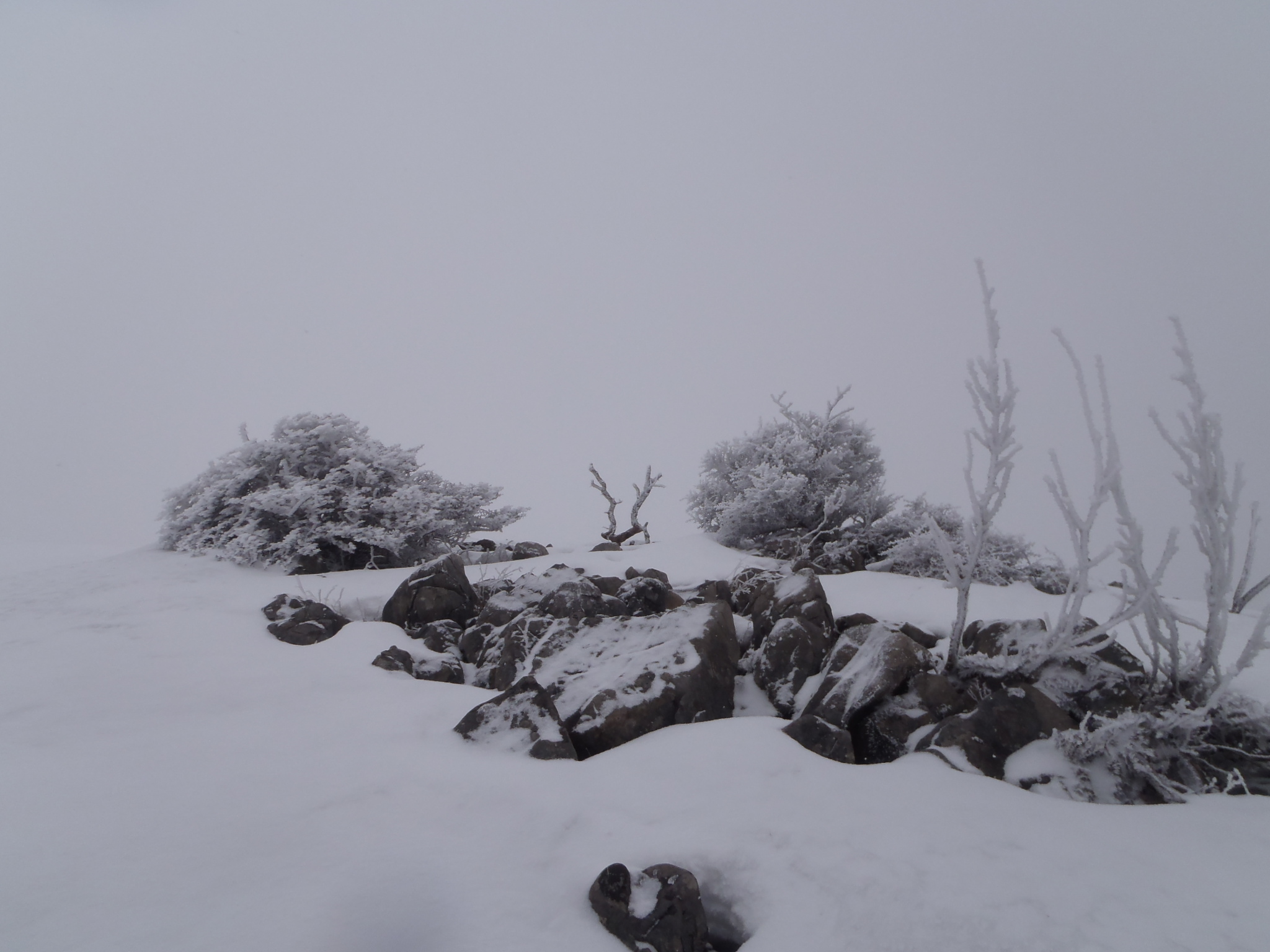 その間も時々明るくなると辺り一面の霧氷がきれいに見れた。